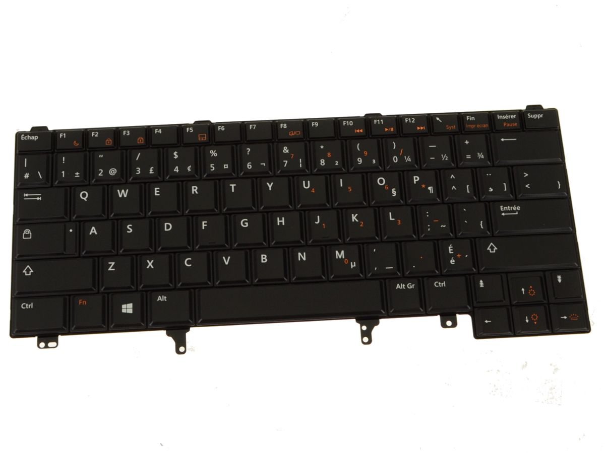 This is a genuine Dell original backlit laptop keyboard, with French-Canadian key layout, for the Dell Latitude E6220 and Latitude E6230 laptops / notebook.