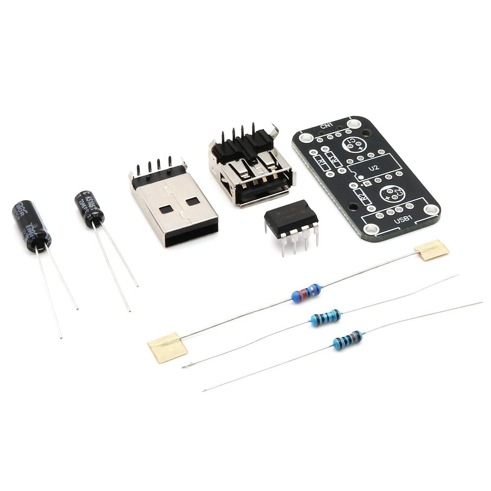 This is the kit form version which requires soldering and assembly – great for those who want to tweak the resistor values for their specific power bank or end device, or even just those who like a cheeky little soldering project. A fully-assembled version is available here, and we also stock an ultra-compact USB-C version.